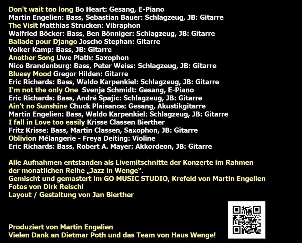 Seit Anfang 2025 wurden die Konzerte der Jazzreihe in Haus Wenge professionell aufgenommen und die Highlights von Martin Engelien im GoMusic Studio wieder absolut top klanglich aufbereitet. Vielen Dank an die phantastischen Kollegen!